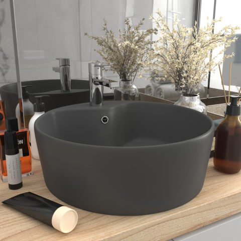 1 kép    vidaXL matt sötétszürke luxus kerámia mosdókagyló túlfolyóval 36x13 cm