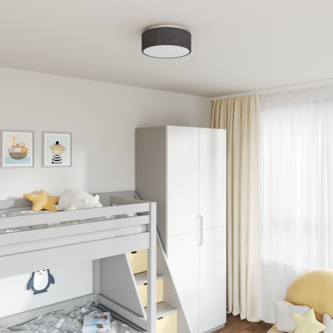 Ez a mennyezeti lámpa modern dizájnja jól passzol a különböző beltéri terekhez. Ötvözi a trendi stílust a praktikummal, így remek hangsúlyozó világítás lehet a nappaliban, hálószobában vagy az irodában. A sima szövet elegáns megjelenést ad neki, szépen illeszkedik a különféle dekorációkhoz, legyen az minimalista vagy klasszikus. Anyag: A lámpa sima, átlátszatlan szövetfelülete friss, modern hangulatú. Elegáns textúrája jól illik a kortárs belső terekhez,