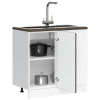 Ez a konyhai alsószekrény optimalizálja a konyha terét, bőséges tárolóhelyet biztosítva személyes tárgyainak! Stabil és tartós anyag: A mesterséges fa tartós és stabil anyag, sima felülettel, amely ellenáll a nedvességnek, a vetemedésnek és a repedésnek, így megbízható választás különféle projektekhez.Bőséges tárolóhely: A mosogató alsószekrény elegendő helyet kínál tálak, tányérok, edények és egyéb konyhai eszközök tárolására.Praktikus ajtók: