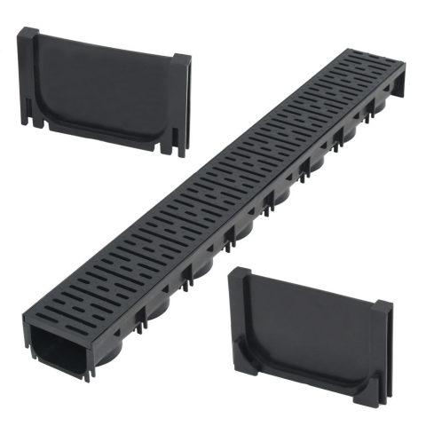 Ez a készlet 1 műanyag ráccsal ellátott folyókát és 2 végzáró elemet tartalmaz. Ideális megoldást kínál az autóbeállón, a verandán vagy egyéb kültéren felgyülemlett víz elvezetéséhez. A folyóka egyedülálló zárszerkezettel rendelkezik, melynek köszönhetően az elemek könnyedén egymáshoz csatlakoztathatók. Kiváló minőségű műanyagból készült, így korrózió-, fagy- és hőálló, és hosszú ideig szolgálja tulajdonosát.