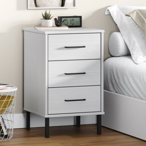 Teljes vidaXL OSLO fehér tömör fenyőfa éjjeliszekrény fém lábakkal termékleírás