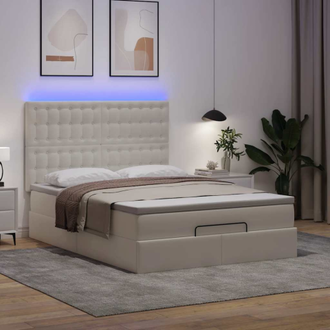 vidaXL Ottomán ágykeret matraccal Fehér 140x200cm műbőrrel