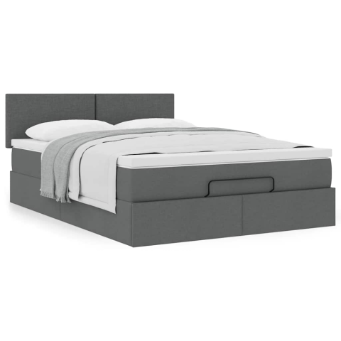 1 kép vidaXL Ottomán ágykeret matraccal sötét szürke 140x190cm szövet