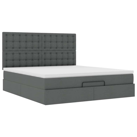 vidaXL Ottomán ágykeret matraccal sötét szürke 180x200cm szövet (3313342)