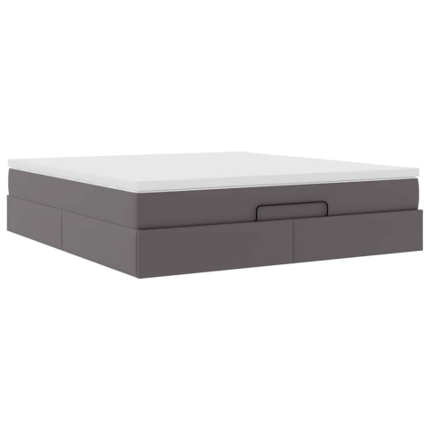 vidaXL Ottomán ágykeret matraccal szürke 180x200cm műbőrrel (3311054) ágy és ágykellék 1 kép