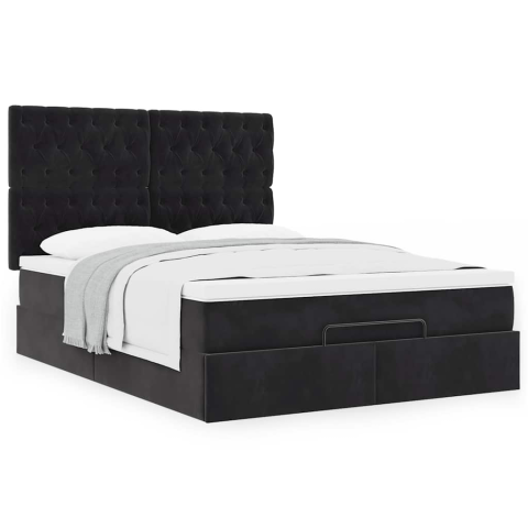 1 kép vidaXL Ottomán ágykeret matracokkal fekete 140x190cm bársony