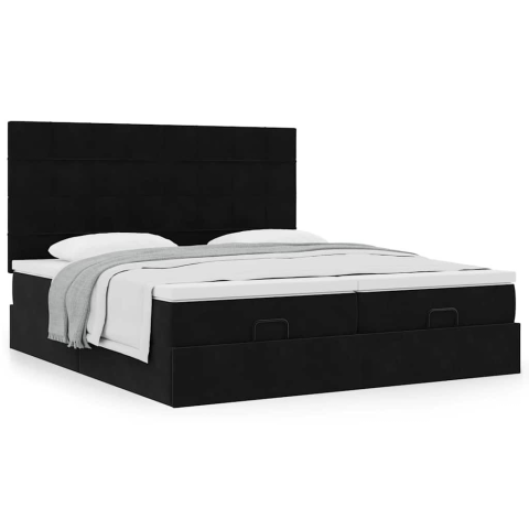 1 kép vidaXL Ottomán ágykeret matracokkal fekete 160x200cm bársony