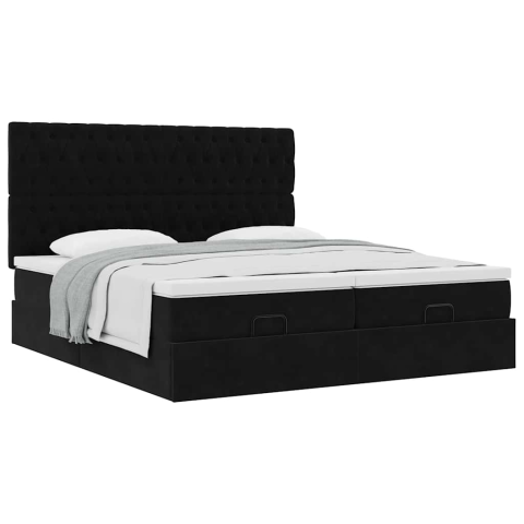 vidaXL Ottomán ágykeret matracokkal fekete 180x200cm bársony (3313792)