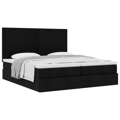 vidaXL Ottomán ágykeret matracokkal Fekete 180x200cm szövet (3313673)