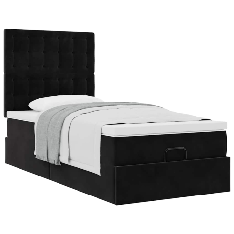vidaXL Ottomán ágykeret matracokkal fekete 90x190cm bársony (3313585)