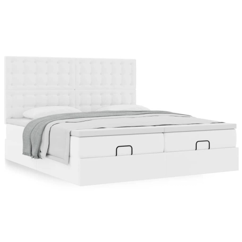 1 kép vidaXL Ottomán ágykeret matracokkal tiszta fehér 200x200cm műbőrrel