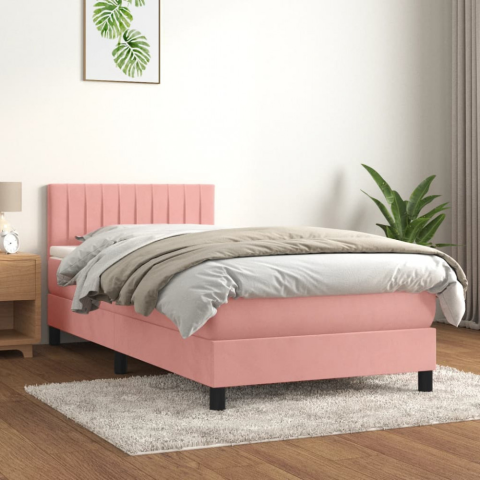 1 kép vidaXL rózsaszín bársony rugós ágy matraccal 90 x 200 cm