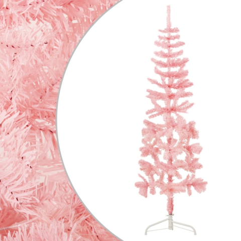 1 kép vidaXL Rózsaszín vékony fél műkarácsonyfa állvánnyal 150 cm