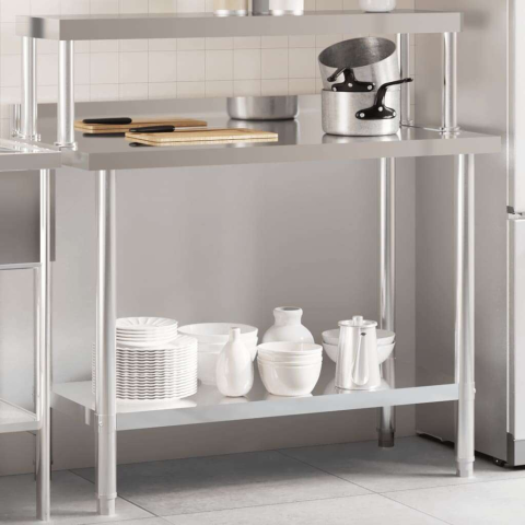 Teljes vidaXL rozsdamentes acél felső polcos konyhai munkaasztal 110x55x120cm termékleírás