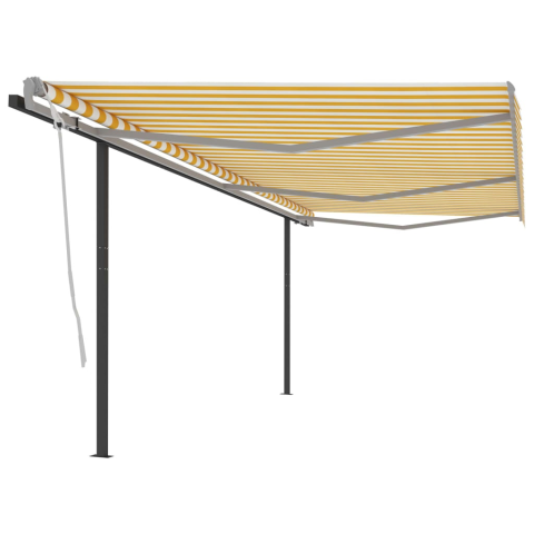 Teljes vidaXL sárga és fehér kézzel kihúzható napellenző póznákkal 6 x 3,5 m termékleírás