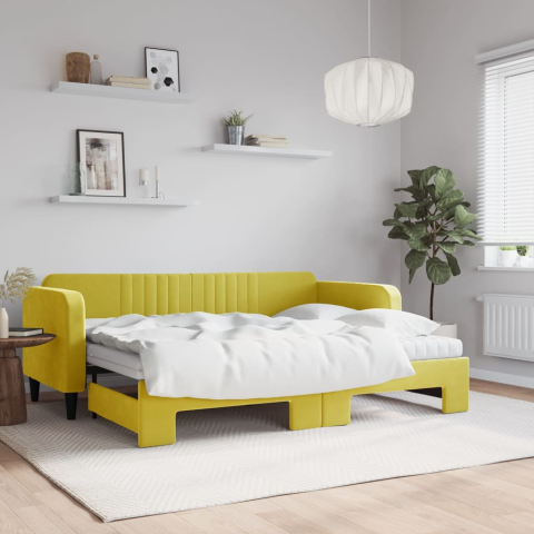 1 kép vidaXL sárga kihúzható bársony heverő matraccal 80 x 200 cm