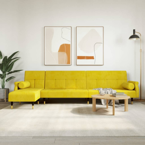 Teljes vidaXL sárga L-alakú bársony kanapéágy 271x140x70 cm termékleírás