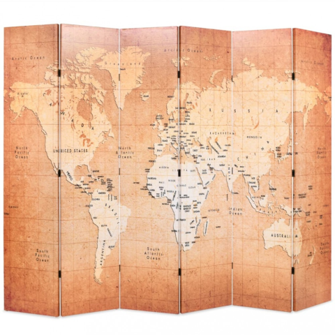 vidaXL Sárga világtérkép mintás paraván 228 x 170 cm bútor termékleírás