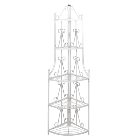 Ez a sarok növény állvány, rozsamintázattal, tökéletes választás, hogy tegye a növényeket látható helyre, egy igazi látványosság bármilyen kertben, udvaron vagy teraszon. Az 5 rétegű növény állvány magassága 160 cm, és lehet tökéletesen helyezni bármilyen fali sarokba. Kiváló minőségű acélból, a növény állvány nagyon tartós, míg a bevonat teszi rozsdamentessé és időtartóssabbá.