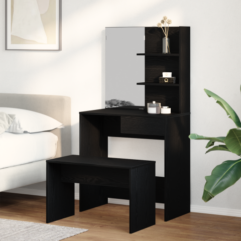 Teljes vidaXL Sminkasztal Szett Fekete Tölgy Műanyag termékleírás