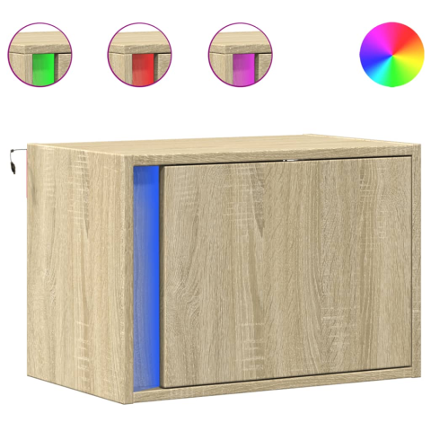 vidaXL sonoma tölgy színű fali éjjeliszekrény LED-világítással (852093) bútor 1 kép