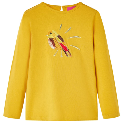 1 kép vidaXL Sötét okker hosszú ujjú gyerekpóló 128