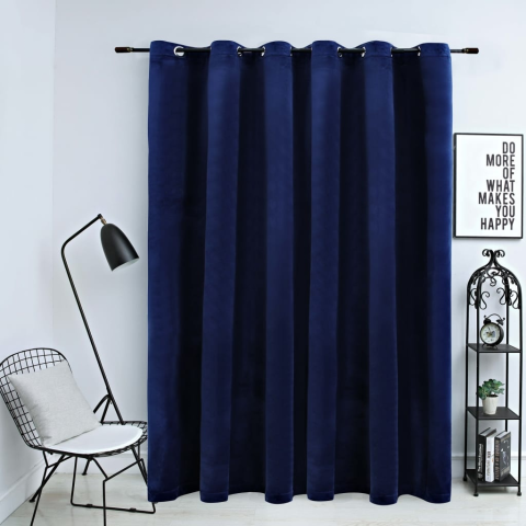 1 kép vidaXL sötétkék bársony sötétítőfüggöny fémkarikákkal 290 x 245 cm