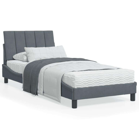1 kép vidaXL sötétszürke bársony ágykeret fejtámlával 90x200 cm
