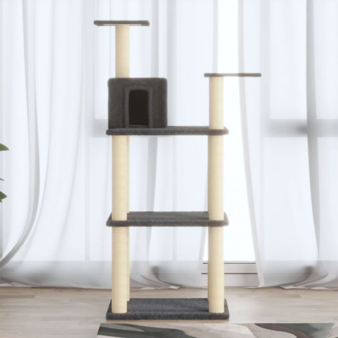 1 kép vidaXL sötétszürke macskabútor szizál kaparófákkal 119 cm