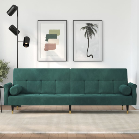 Teljes vidaXL sötétzöld bársony kanapéágy párnákkal termékleírás