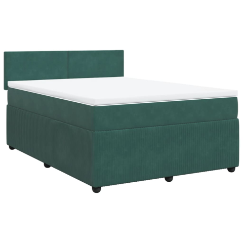 vidaXL sötétzöld bársony rugós ágy matraccal 160x200 cm (3287779) ágy és ágykellék 1 kép