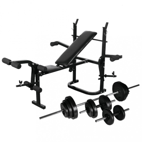 vidaXL Súlyzópad állvánnyal, egykezes és kétkezes súlyzószettel 30,5 kg