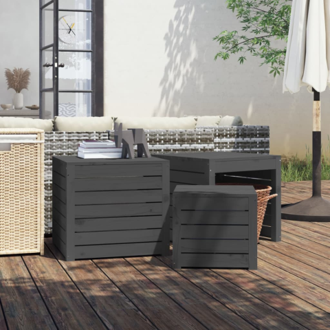 1 kép vidaXL szürke 3-részes tömör fenyőfa kerti ládaszett