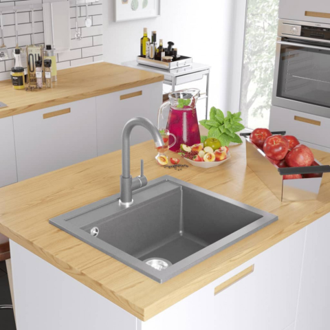 2 kép vidaXL Szürke egymedencés gránit mosogatótálca