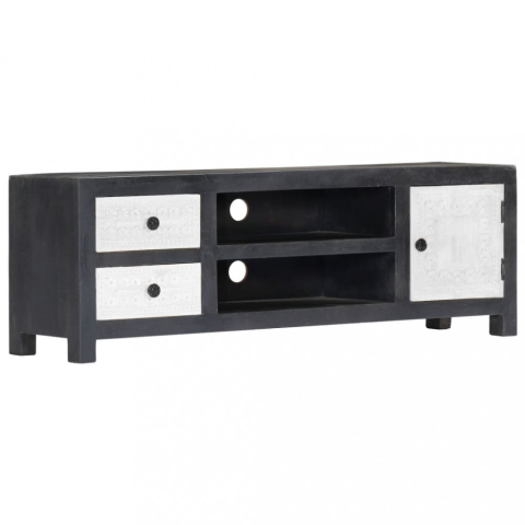 Teljes vidaXL szürke/fehér kézzel faragott mangófa TV-szekrény 120x30x40 cm termékleírás