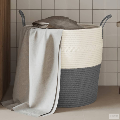 Teljes vidaXL Szürke-fehér pamut tárolókosár Ø43 x 38 cm termékleírás