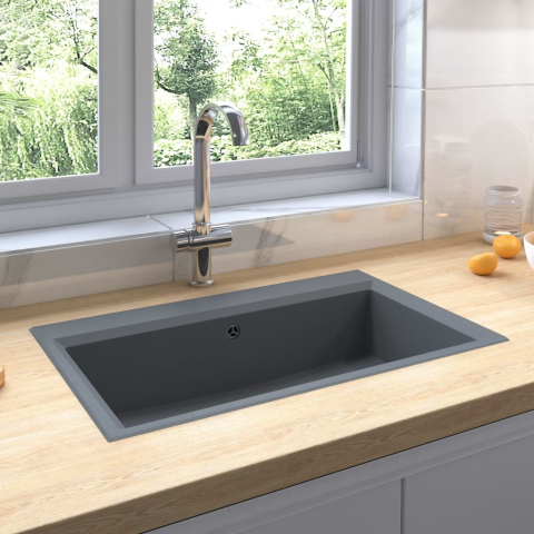 1 kép vidaXL szürke gránit konyhai mosogatótálca túlfolyóval