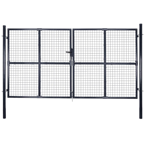 1 kép vidaXL szürke horganyzott acél hálós kertkapu 289 x 200 cm