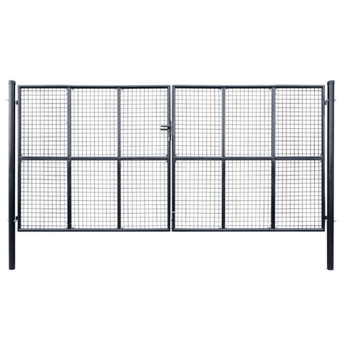 1 kép vidaXL Szürke horganyzott acél hálós kertkapu 400 x 200 cm