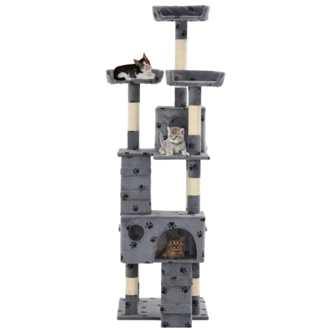 1 kép vidaXL szürke, mancsmintás macskabútor szizál kaparófákkal 170 cm
