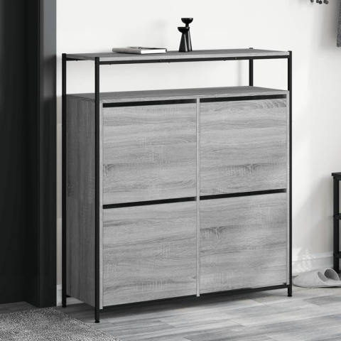 Teljes vidaXL szürke sonoma cipőszekrény 4 kihajtható fiókkal 100x34x112 cm termékleírás