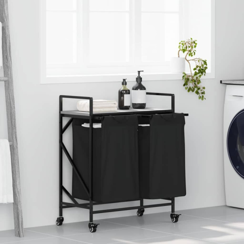 vidaXL szürke sonoma mosodai kosár 2 rekeszes kerekekkel bútor termékleírás