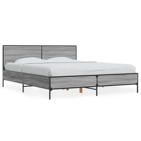 1 kép vidaXL szürke sonoma szerelt fa és fém ágykeret 160 x 200 cm