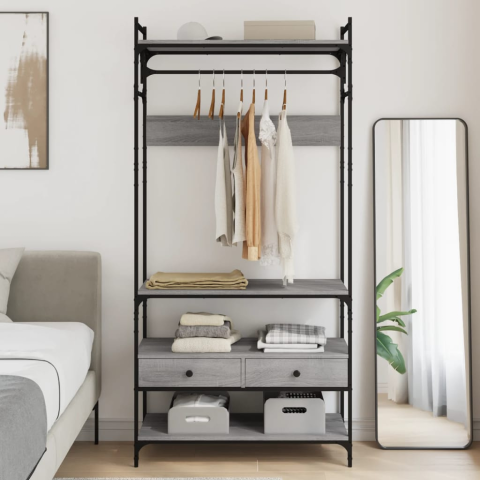 Teljes vidaXL szürke sonoma szerelt fa ruhásszekrény fiókokkal 89x39x184,5 cm termékleírás