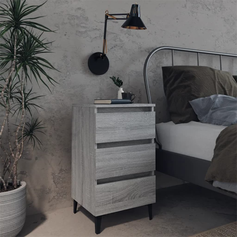 Teljes vidaXL szürke sonoma színű éjjeliszekrény fémlábakkal 40 x 35 x 69 cm termékleírás