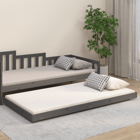 2 kép vidaXL Szürke tömör fenyőfa ágykeret 90 x 200 cm