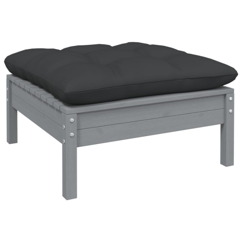 Teljes vidaXL szürke tömör fenyőfa kerti lábzsámoly antracitszürke párnával termékleírás
