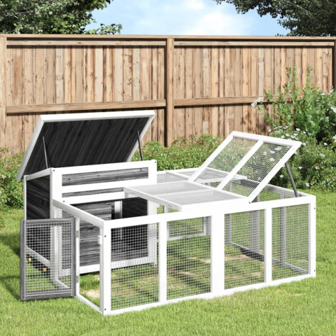 1 kép vidaXL szürke tömör fenyőfa nyúlketrec 144 x 123 x 67,5 cm