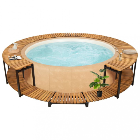 Ez a fa pezsgőfürdőkeret jakuzzija sokoldalú kiegészítője lesz. Elegáns megjelenést kölcsönöz pezsgőfürdőjének, miközben jobban kihasználható és felhasználóbarát környezetet teremt a pezsgőfürdő számára. Időjárásálló tömör akácfából készült természetes olajbevonattal, így a pezsgőfürdő könnyen tisztítható, és mindennapi használatra alkalmas. A porszórt alumíniumváznak köszönhetően a keret erős és masszív. Biztosan értékelni fogja a pe