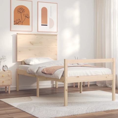 vidaXL tömör fa ágykeret fejtámlával 100 x 200 cm ágy és ágykellék 1 kép
